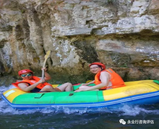 更換好漂流服,踏上橡皮艇,大家便迫不及待地打起了水仗,重溫了兒時(shí)的童趣,河岸上留下了大家的串串笑聲。橡皮船順流而下,上半段水道的落差很大,連續(xù)多處人造水坡,坡陡水急,皮艇俯沖而下,激起數(shù)米高的層層浪花,不禁讓人心跳加速,冰涼舒爽的那份快感又讓人大呼過癮,更激起了大家激流勇進(jìn)的欲望。河道中彼此你追我趕,一旦相遇少不了一場戲水激戰(zhàn)。下半段的河段較上半段平靜很多,但很快這種平靜便在水戰(zhàn)中熱鬧起來。歡呼聲、被水擊中的尖叫聲、開懷的笑聲,回蕩在山谷,混響成一首只有快樂才能演繹的交響樂。