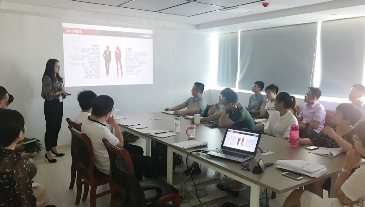 海南分公司助理總經理陳娟通過PPT展示,將商務禮儀基本常識和公司的實際情況結合起來,圍繞實際業(yè)務開拓主講了儀表禮儀、儀態(tài)禮儀、辦公禮儀、商務交往中的禮儀、溝通中的禮儀、宴會禮儀等內容,并與大家進行了互動交流。