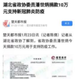 1月26日,潘世炳以湖北省房地產(chǎn)業(yè)協(xié)會會長、省新聯(lián)會副會長兼社會組織分會會長身份,向行業(yè)同仁發(fā)起倡議,號召廣大會員捐款捐物,向社會各界征集防護物資采購渠道。業(yè)內企業(yè)、有關社會組織同聲響應,慷慨解囊,捐款捐物(含總部)總額超過10億元,捐贈各類醫(yī)護用品等價值2491萬元。