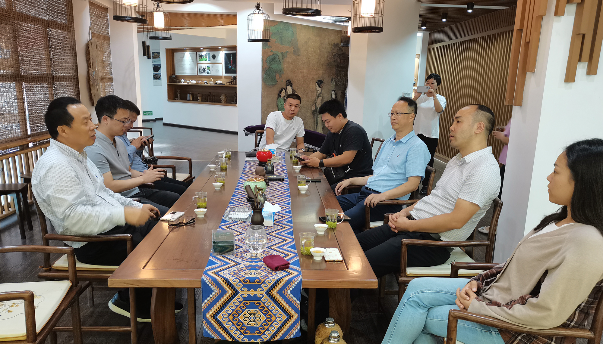 恩施市屯堡鄉(xiāng)黨委書記雷世軍、副書記黃曉等分別介紹了屯堡鄉(xiāng)基本情況、特色產(chǎn)業(yè)和發(fā)展規(guī)劃等。潘世炳一行調(diào)研了馬者村村委會(huì)、多個(gè)茶葉生產(chǎn)基地及民宿,并與省政府辦公廳駐村工作隊(duì)、屯堡鄉(xiāng)黨委班子及馬者村干部進(jìn)行了座談。結(jié)合馬者村的實(shí)際情況和現(xiàn)有條件,就馬者村鄉(xiāng)村振興工作、茶產(chǎn)業(yè)規(guī)劃提出了建設(shè)性意見和建議。