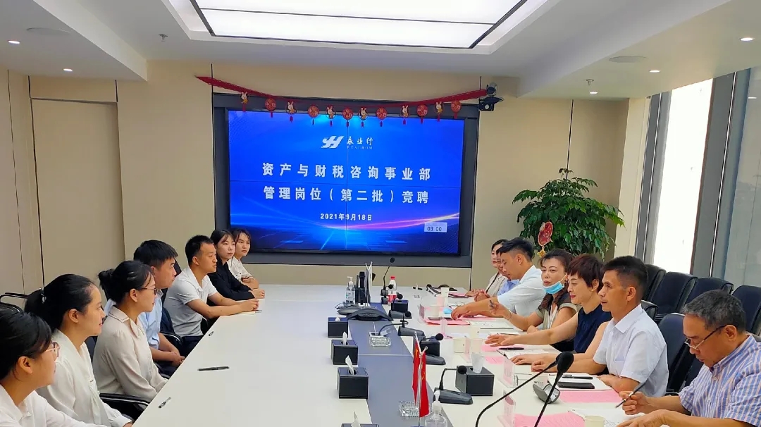 2021年9月18日,永業行舉辦資產與財稅咨詢事業部管理崗位(第二批)競聘會。輪值總裁王琴,資產與財稅咨詢事業部班子成員、優秀員工代表及10位競聘人員參加了會議。