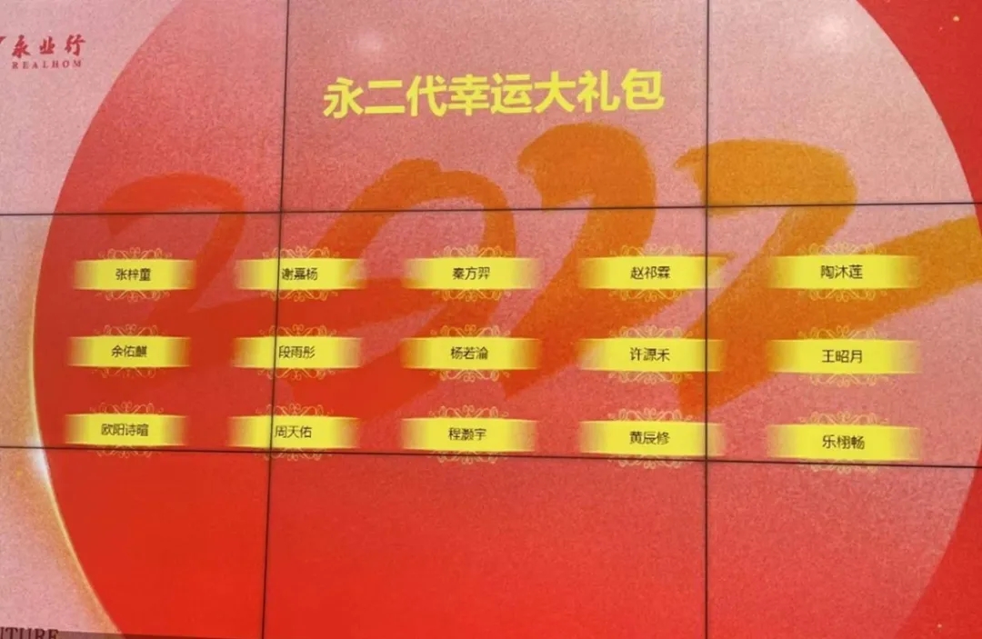 “永二代”代表著關愛、傳承與希望。永業行一直以來十分重視和關愛每一位員工的家庭幸福生活,特別是“永二代”的成長情況。聯歡活動中,董事長潘世炳抽取了“永二代”幸運大禮包,為100名永業行寶寶們送上了新年的祝福。伴隨著永二代幸運大禮包得主們的誕生,“永二代”活動室建設方案也正式啟動。