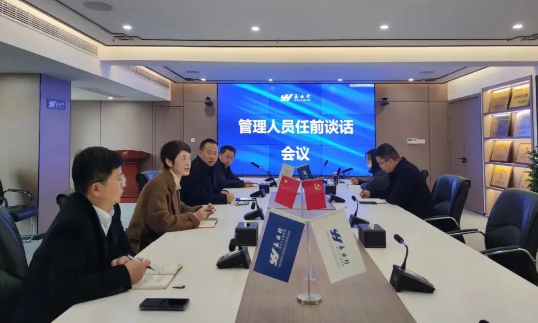 2022年1月5日,永業行組織人事改革后的第一批新晉管理人員集體談話會,公司黨委書記、董事長潘世炳,輪值總裁王琴,副總裁雷小軍、程為民及總部職能部門負責人參加會議。