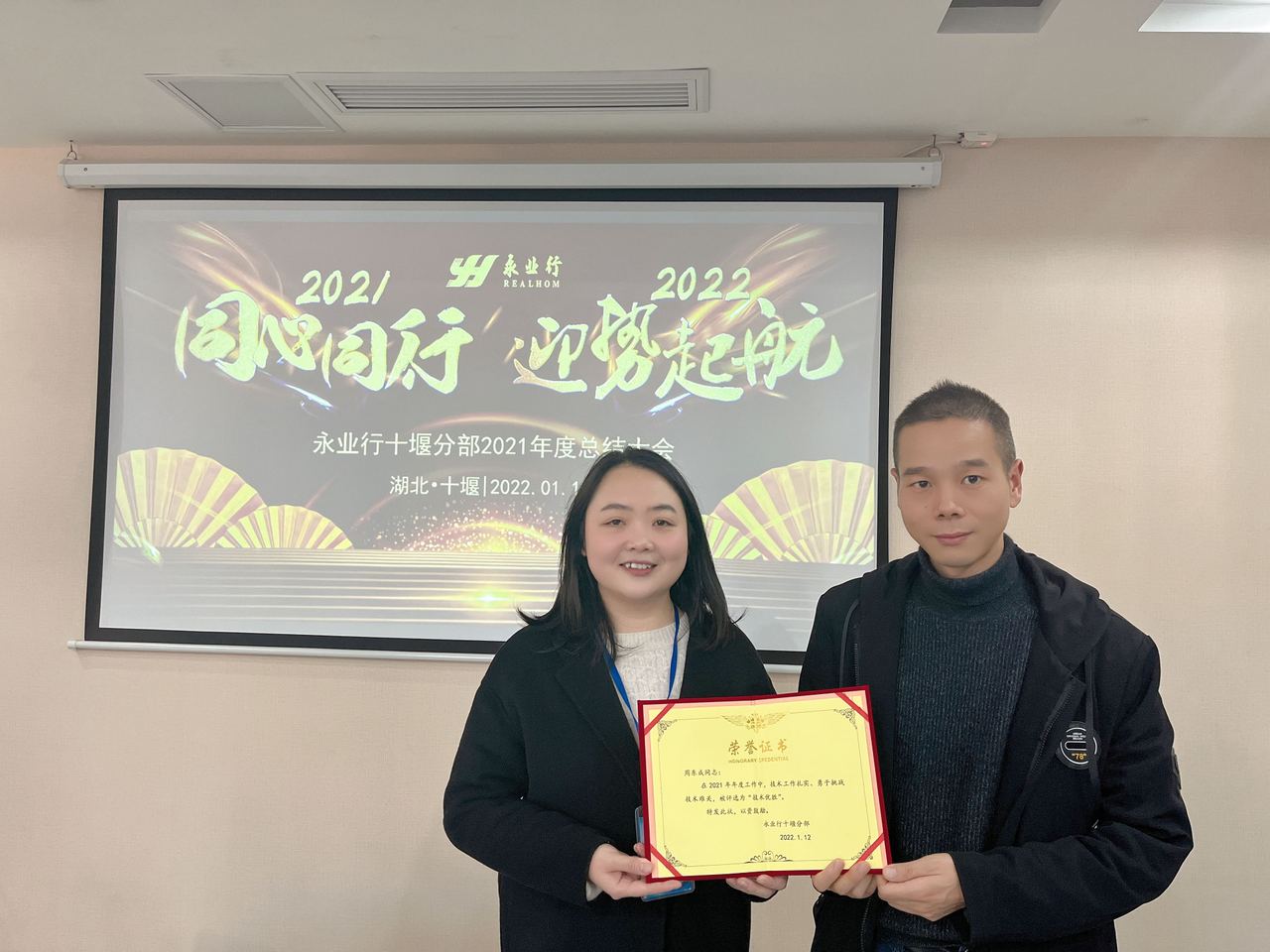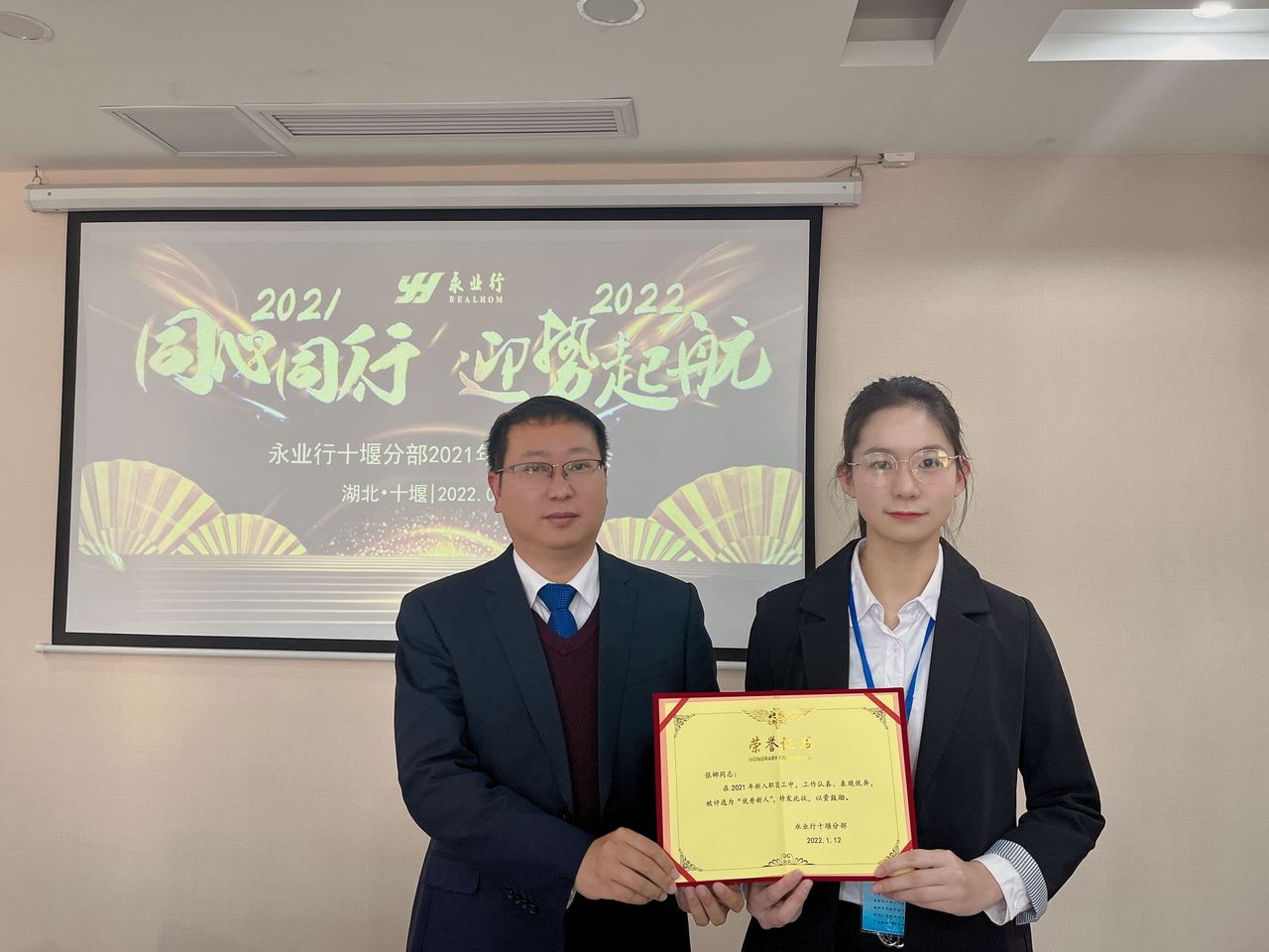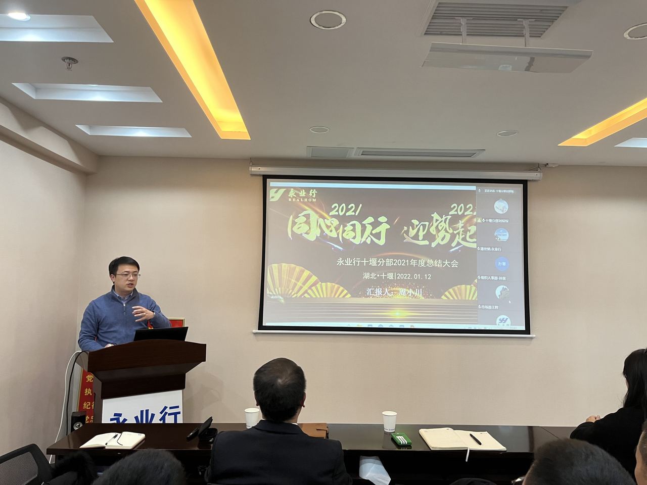 2022年1月12日下午,永業(yè)行十堰分部召開2021年年終總結(jié)會。永業(yè)行董事長潘世炳、副總裁文云波,十堰分部總經(jīng)理周小川,總部各職能部門負(fù)責(zé)人及代表、十堰分部全體員工以線上線下形式參加會議。
