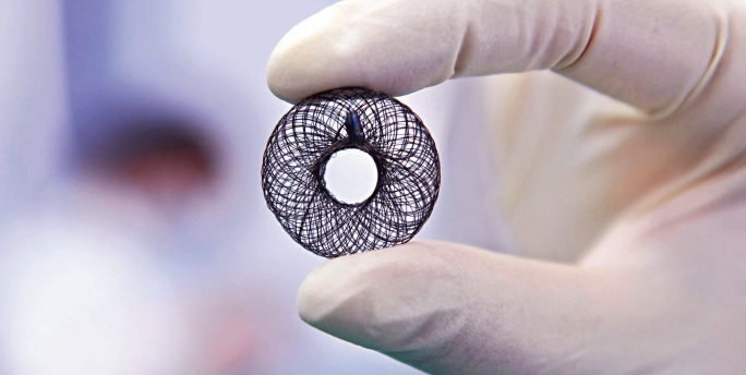 在武漢唯柯醫(yī)療科技有限公司,一個(gè)熟練工制作一枚直徑約24mm的心房分流器要用近三個(gè)小時(shí),再經(jīng)過(guò)高溫定型等多道工序完成。心房分流器用于心力衰竭的治療上,是國(guó)內(nèi)首創(chuàng)、國(guó)際領(lǐng)先的心衰介入治療前沿器械。 長(zhǎng)江日?qǐng)?bào)記者高勇 攝