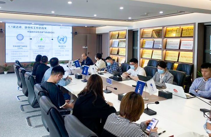 會上,劉洋博士從我國雙碳政策背景、國家及湖北省雙碳工作進展、重點企業雙碳目標實現路徑等方面展開了細致闡述,分享了湖北碳排放權交易中心在雙碳領域的工作進展,并與參會人員圍繞相關熱點問題進行了深入的探討與交流。