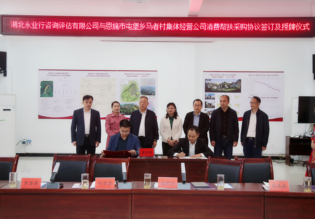 2022年5月19日下午,永業行與恩施市屯堡鄉馬者村集體經營公司消費幫扶采購協議簽訂儀式在馬者村舉行。省政府辦公廳副主任何麗君,省政府參事、永業行黨委書記潘世炳等出席儀式并講話。恩施市屯堡鄉黨委書記雷世軍致歡迎辭。恩施市副市長吳紅春主持儀式。