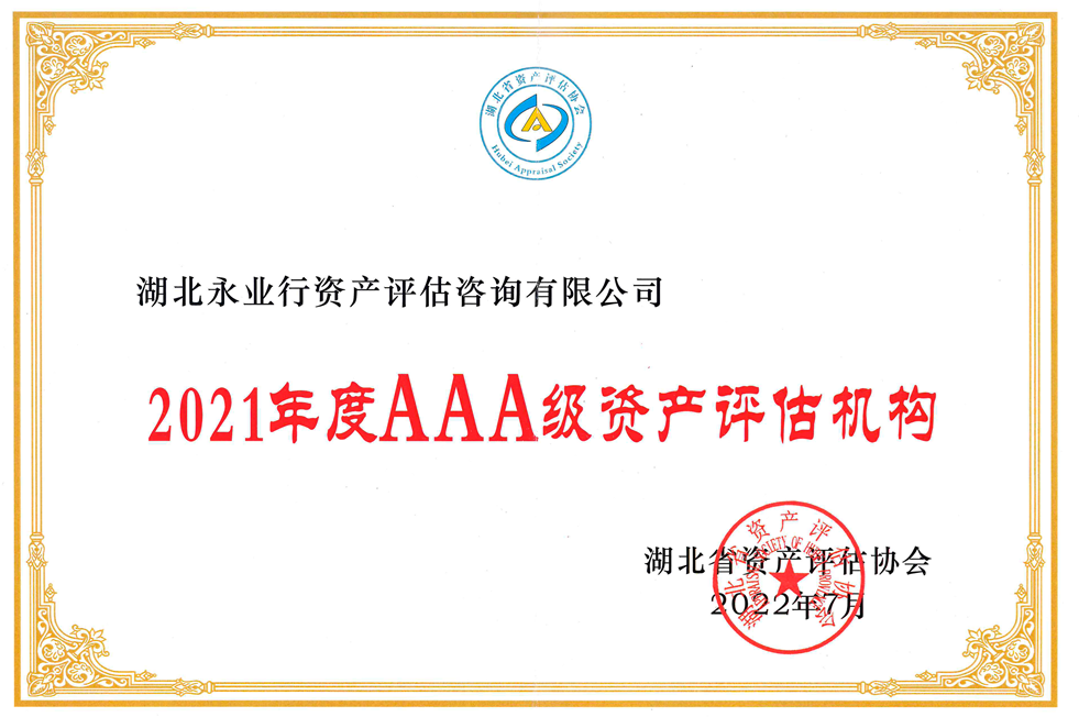 7月8日,湖北省資產(chǎn)評估協(xié)會發(fā)布《湖北省資產(chǎn)評估機構(gòu)2021年度綜合評價信息公告》,永業(yè)行以綜合排名第三的成績,連續(xù)十一年獲評“年度AAA級資產(chǎn)評估機構(gòu)”。