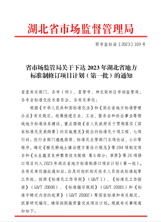 近日,根據《湖北省市場監督管理局關于下達2023年湖北省地方標準制修訂項目計劃(第一批)的通知》,永業行作為牽頭單位負責起草的《湖北省老舊小區改造項目投資估算編制規范》和作為主編單位負責起草的《土地儲備計劃編制規范》2個項目成功立項。