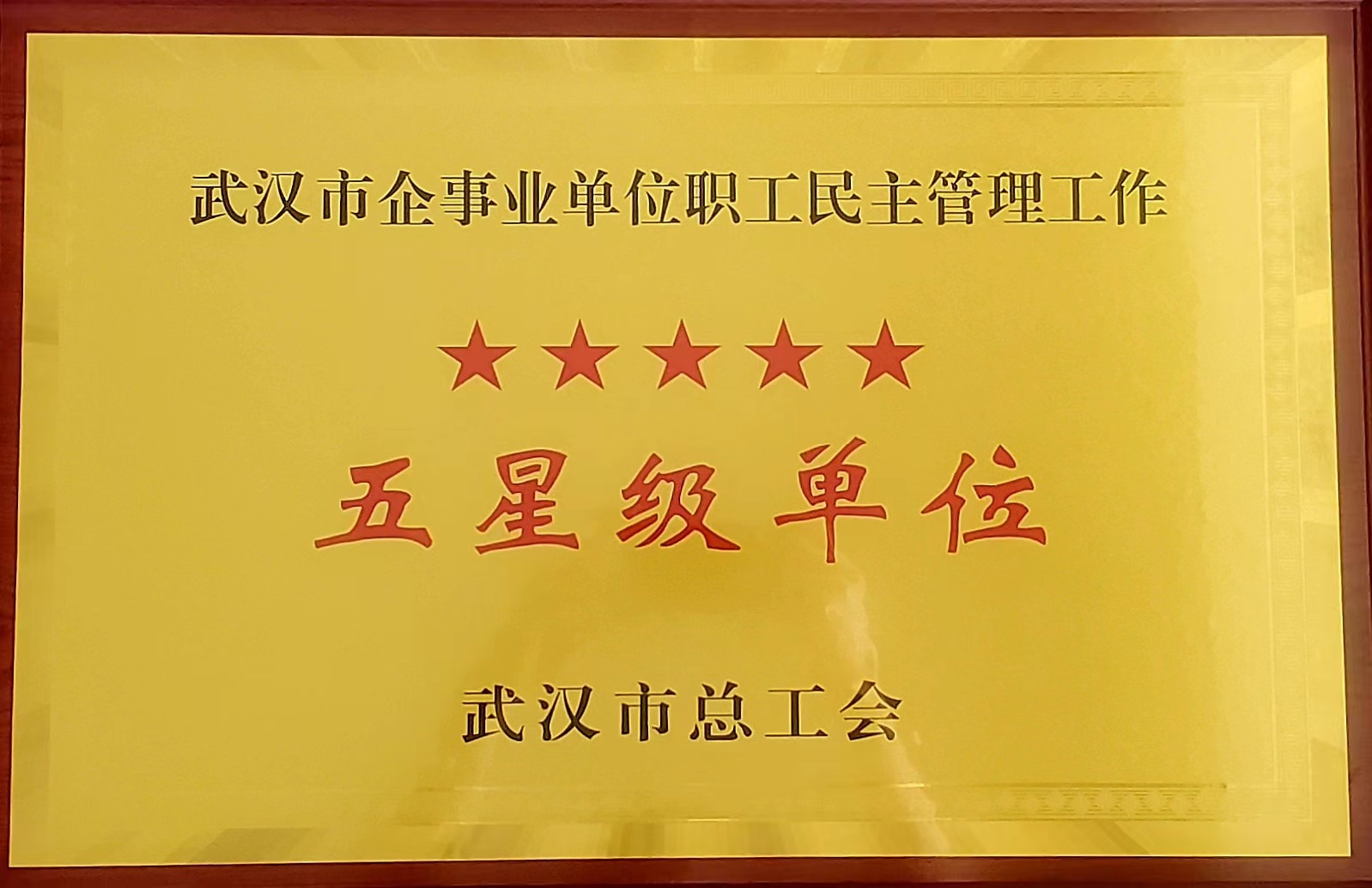 武漢市企事業單位職工民主管理工作五星級單位