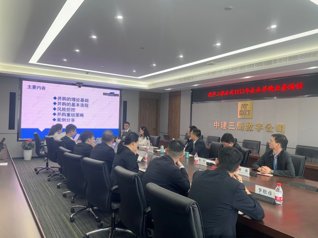 10月20日,中建三局數字工程有限公司(以下簡稱“中建三局數字公司”)組織召開企業并購專題培訓,永業行技術中心價值評估咨詢技術部總經理劉勛濤受邀作專題培訓,中建三局數字公司黨建與戰略發展部執行經理汪緒普主持會議。