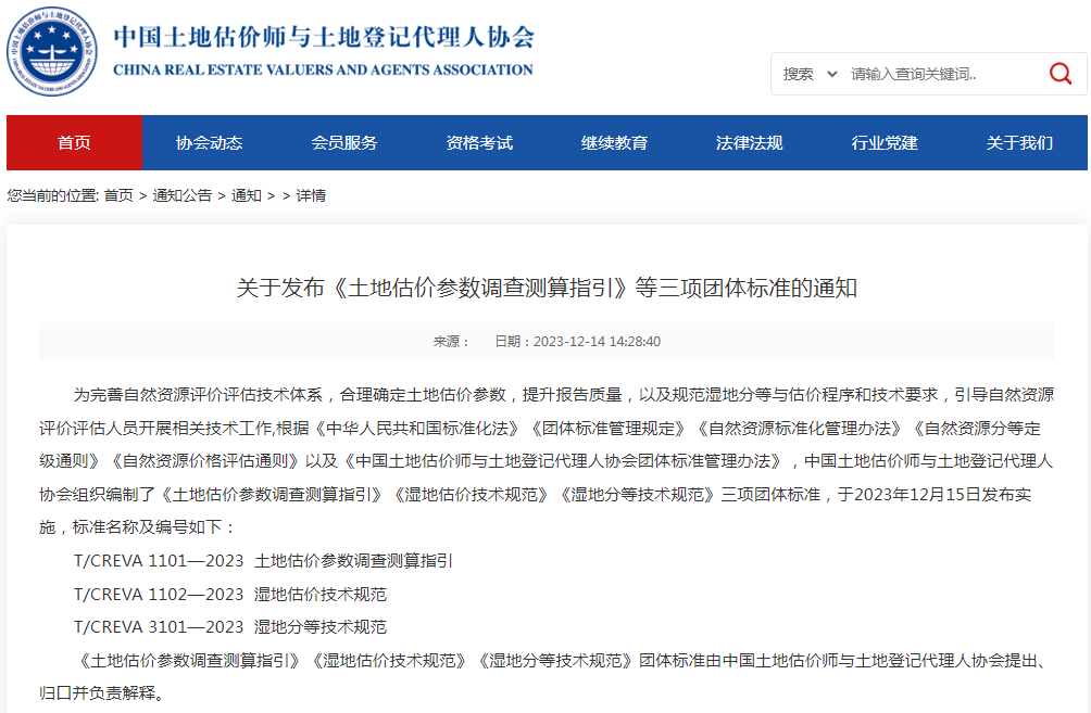 12月14日,中國(guó)土地估價(jià)師與土地登記代理人協(xié)會(huì)(以下簡(jiǎn)稱“中估協(xié)”)發(fā)布三項(xiàng)團(tuán)體標(biāo)準(zhǔn),永業(yè)行參編的《土地估價(jià)參數(shù)調(diào)查測(cè)算指引》(T/CREVA 1101—2023)于2023年12月15日發(fā)布實(shí)施。