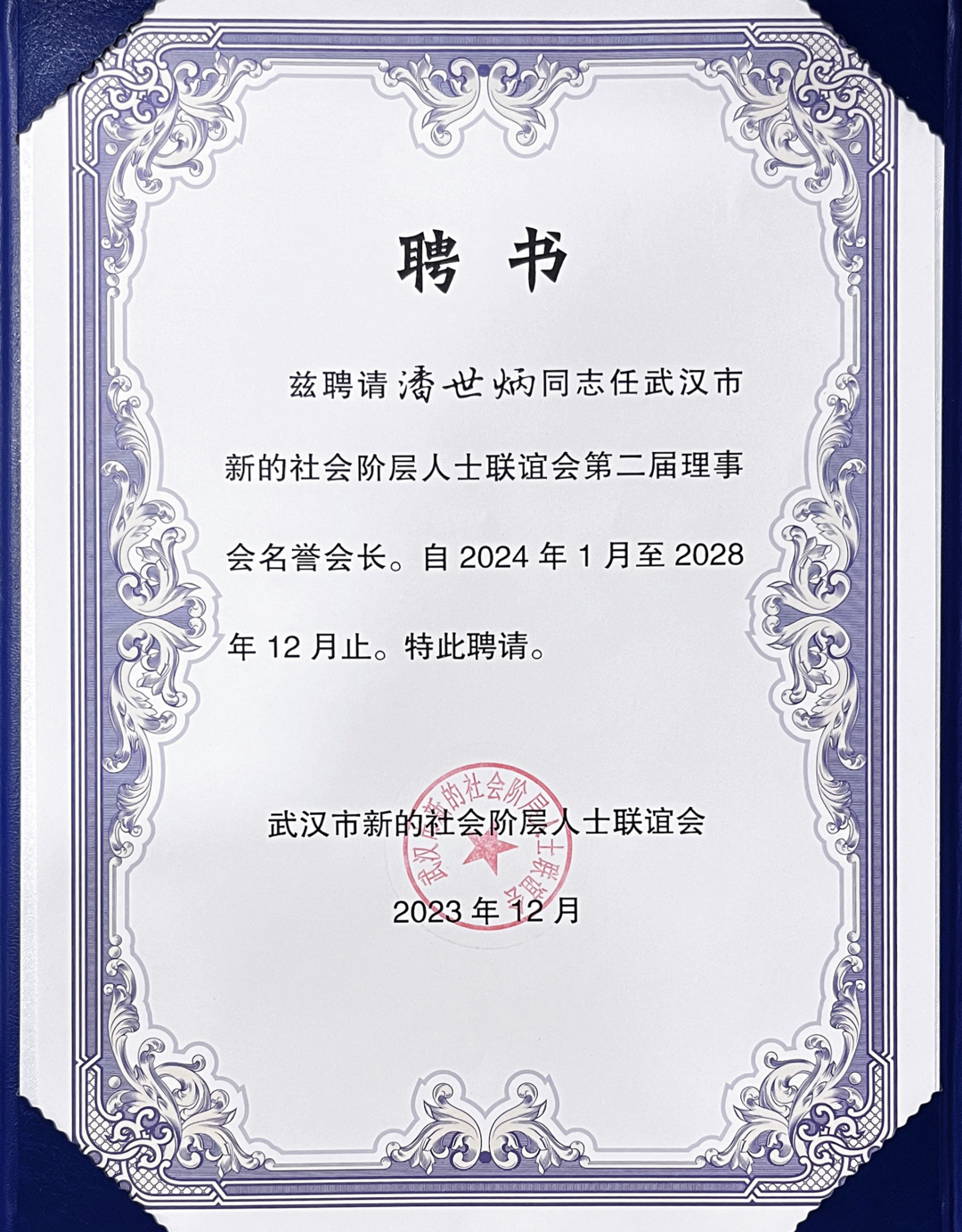 2023年12月15日,武漢市新的社會階層人士聯誼會(下稱“市新聯會”)第二次會員代表大會在武漢召開。會議由武漢市委統戰部副部長何文娟主持。武漢市委常委、市委統戰部部長胡勇政出席并講話。省委統戰部新階層處處長袁偉到會指導并致辭。省新聯會副會長、永業行董事長潘世炳受聘為武漢市新聯會第二屆理事會名譽會長,永業行高級副總裁文云波當選為副會長。