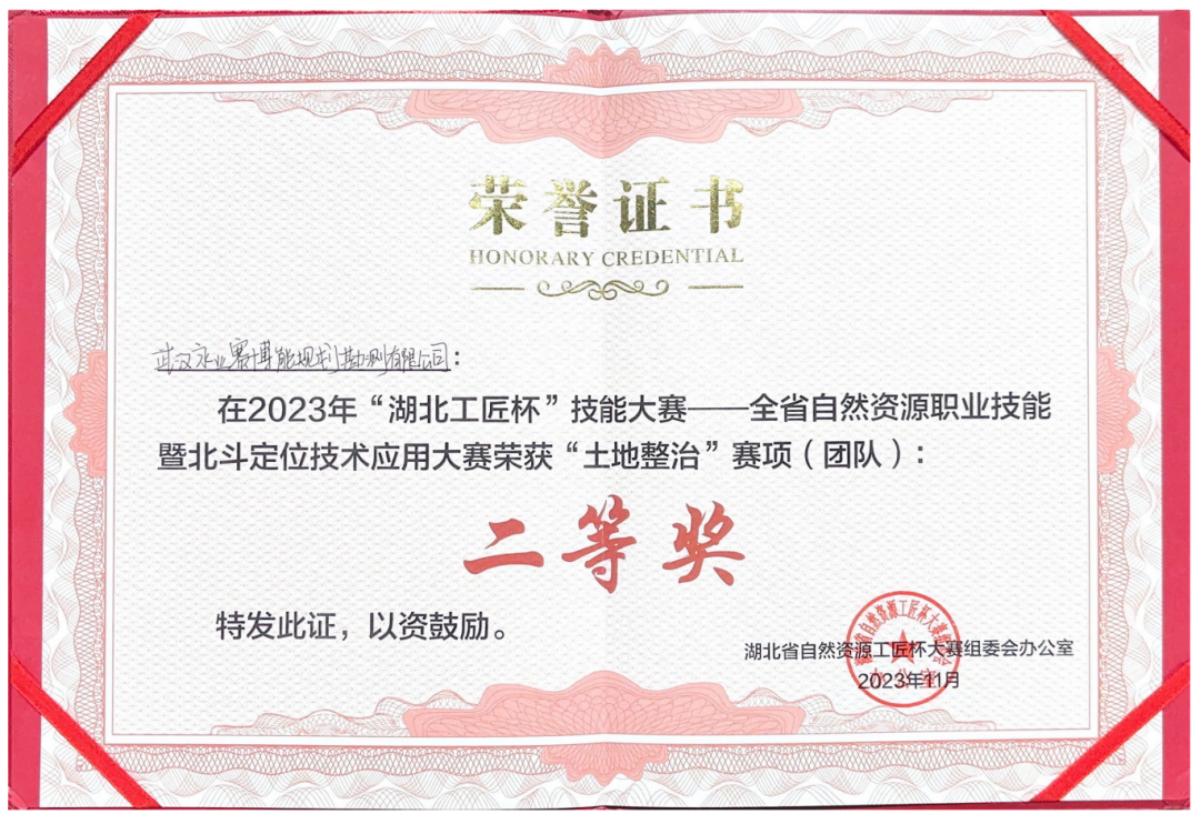 2023年“湖北工匠杯”技能大賽--全省自然資源職業技能暨北斗定位技術應用大賽“土地整治”賽項二等獎