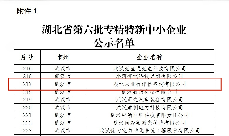 湖北省專精特新中小企業——永業行