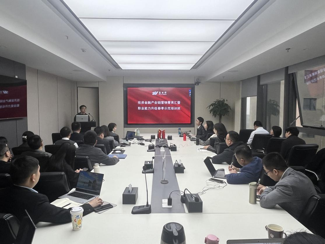 為提振人員士氣,提升全體市場人員專業(yè)能力,培養(yǎng)具有創(chuàng)新思維和團(tuán)隊協(xié)作能力的綜合人才,推動永業(yè)行服務(wù)升級,投資金融產(chǎn)業(yè)鏈于2024年3月17日舉辦“營銷菁英匯暨職業(yè)能力升級春季示范培訓(xùn)班”開班儀式并開展第一期專題培訓(xùn),永業(yè)行高級副總裁文云波做開班致辭,投資金融產(chǎn)業(yè)鏈副總經(jīng)理楊鳳、趙輝,業(yè)務(wù)中心總經(jīng)理王利平及全體市場人員近50人參加會議。