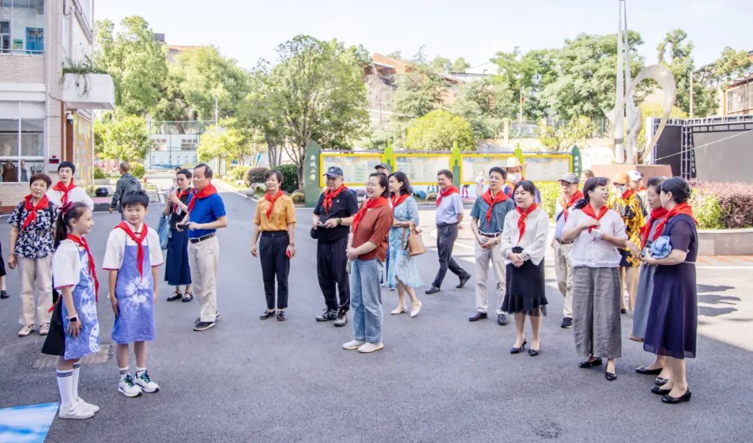 伴著熱情的掌聲,武漢市婦女事業(yè)發(fā)展促進(jìn)會(huì)和經(jīng)開區(qū)教育局的領(lǐng)導(dǎo)們步入新城小學(xué),學(xué)校六年級(jí)優(yōu)秀畢業(yè)生為嘉賓佩戴鮮艷的紅領(lǐng)巾。走進(jìn)新城小學(xué),已感受到濃濃的節(jié)日氛圍,教學(xué)樓前,扎染展區(qū)、美術(shù)展區(qū)展出了孩子們動(dòng)手創(chuàng)作的工藝品,美術(shù)展區(qū)內(nèi),書法社的師生現(xiàn)場(chǎng)創(chuàng)作折扇;舞臺(tái)上,古箏表演《少年中國說》《采菊東籬下》、舞蹈表演《AI里的傳承》等表演精彩紛呈。