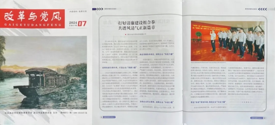 近日,中共武漢市紀(jì)律檢查委員會(huì)、武漢市監(jiān)察委員會(huì)主辦的雜志《改革與黨風(fēng)》,刊發(fā)《打好清廉建設(shè)組合拳 共譜風(fēng)清氣正新篇章》文章,宣傳介紹了永業(yè)行堅(jiān)持以黨建為引領(lǐng),多措并舉推進(jìn)清廉企業(yè)建設(shè)的實(shí)踐和經(jīng)驗(yàn)。