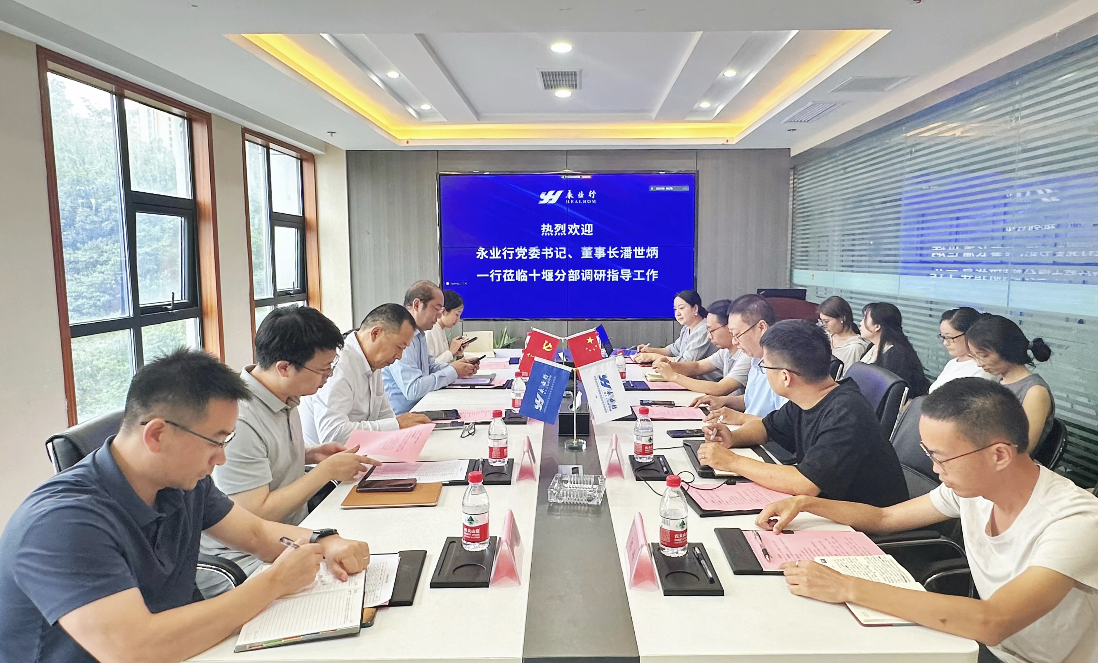 2024年9月11日,永業行董事長潘世炳、常務副總裁吳學鋒、高級副總裁文云波一行蒞臨永業行十堰分部調研指導工作,十堰分部總經理周小川及管理團隊、員工代表參加座談。
