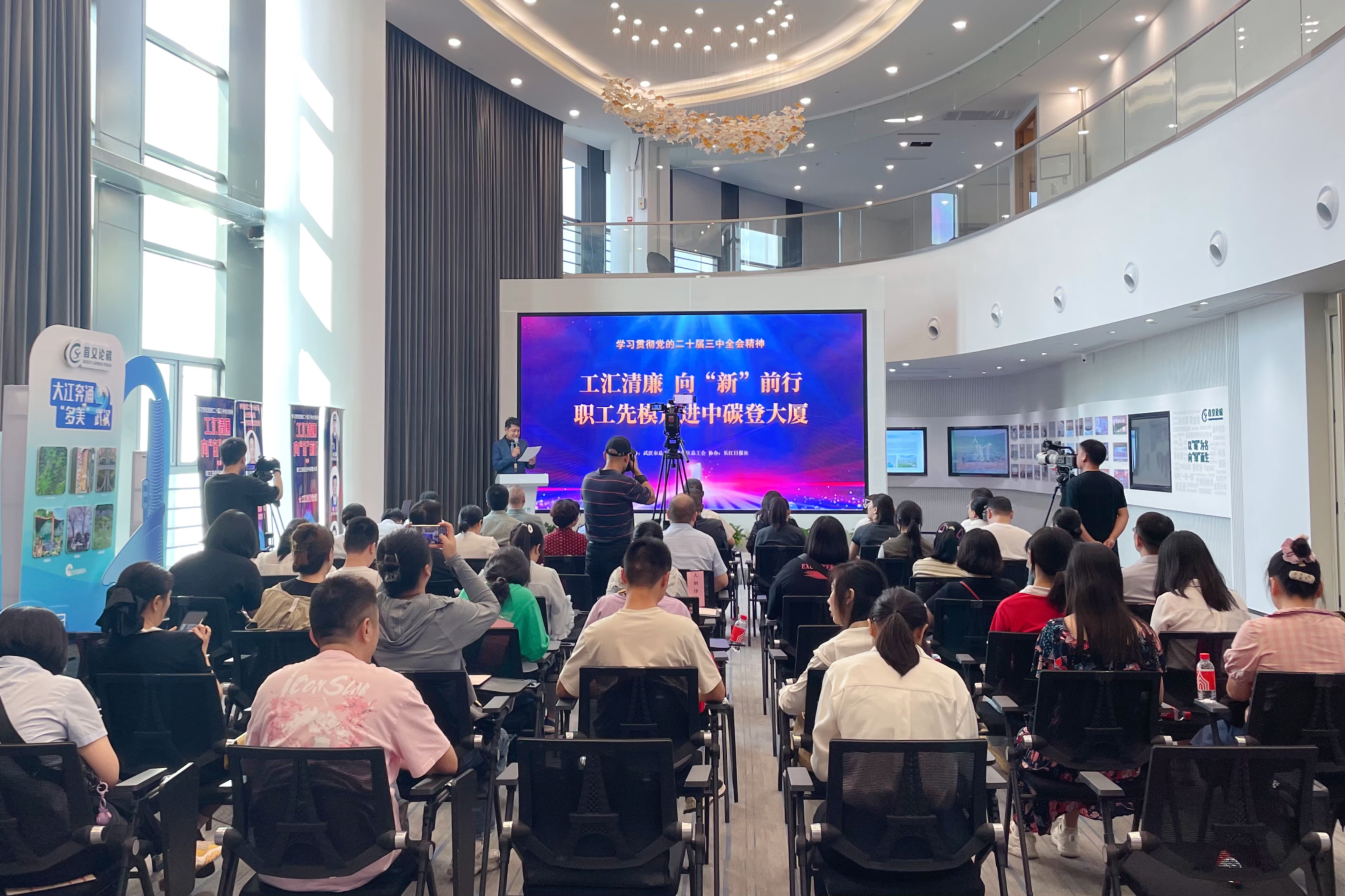 2024年9月27日,由武漢市總工會、武昌區總工會聯合主辦,長江日報社承辦的“工匯清廉?向‘新’前行”第二場主題活動在中碳登大廈舉行。武漢市總工會黨組成員、經審會主任馬歡,武漢市總工會宣傳教育部副部長賀鵬,武昌區總工會黨組書記、常務副主席鐘桃云出席會議。永業行黨委委員、高級副總裁文云波參加會議,并作《學習貫徹黨的二十屆三中全會精神 全力賦能綠色轉型——永業行實現高質量發展新局面》主題宣講。