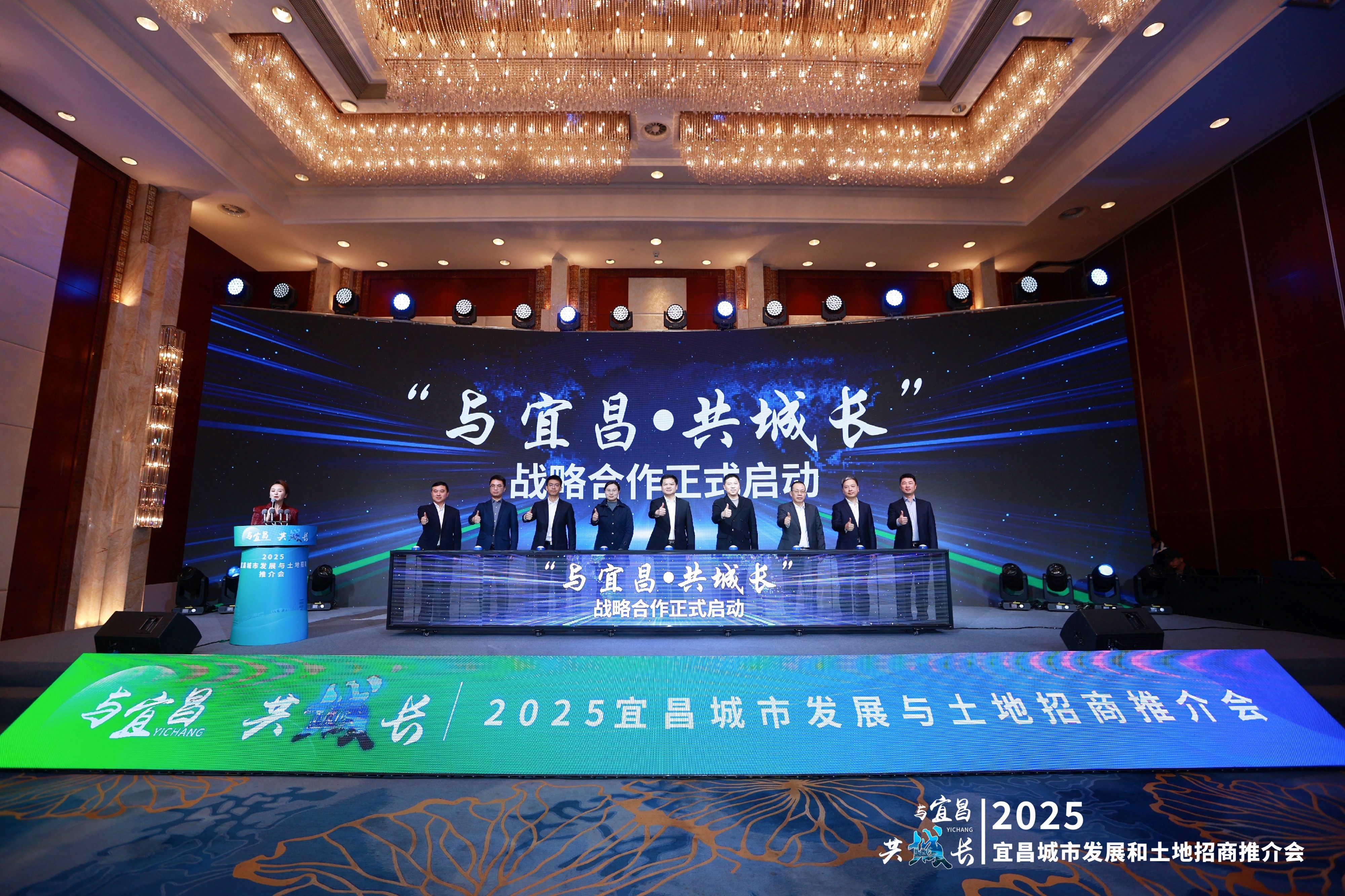 會議最后,阮斌、劉成、潘世炳等領(lǐng)導(dǎo)和嘉賓上臺,共同啟動“與宜昌·共城長”戰(zhàn)略合作儀式。
