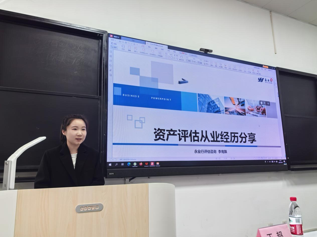 宣講會上,李鸞飄作為行業優秀青年代表,結合自身從業經歷,分享了資產評估行業的發展前景、考試經驗及職業規劃建議,鼓勵學生積極報考資產評估師,投身咨詢評估行業,實現自身價值。