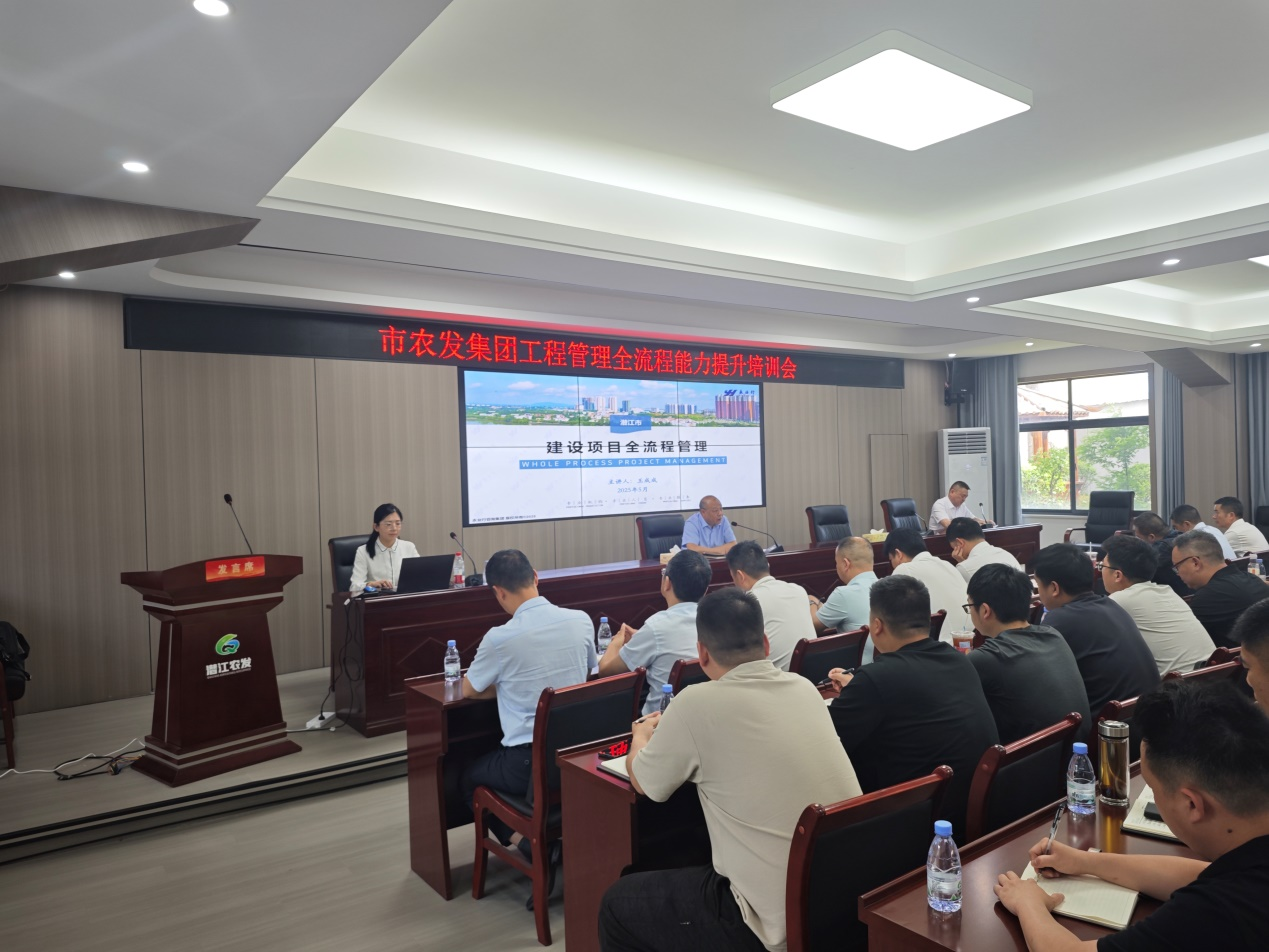 2025年5月12日,潛江市農業發展集團有限公司組織召開“市農發集團工程管理全流程能力提升培訓會”,市農發集團副總經理涂濤主持會議。永業行投資金融事業群工程咨詢事業部總監王成成受邀作《建設項目全流程管理》專題培訓。