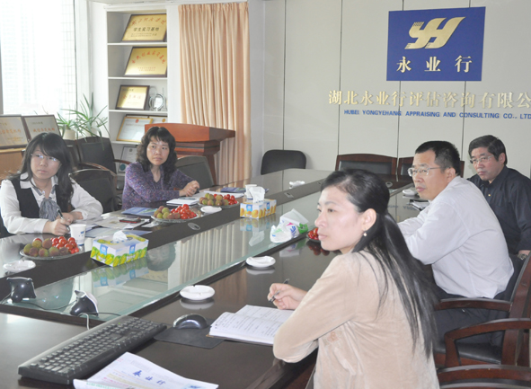 永業行總裁潘世炳、副總裁肖鋒等對葉處長一行予以了熱情接待。潘總客觀闡述了將武漢打造成中部中介服務業中心的必要性和重要性,以及武漢中介服務業的基本情況。針對目前武漢中介服務業發展過程中存在的一些問題,潘總提出了“將中介服務業發展納入政府規劃,借兩型社會建設機會先行試點改革管理體制”等建議。此外,他還向葉處長一行簡單介紹了永業行的基本現狀、行業地位、發展戰略及企業愿景等。葉處長等表示,永業行作為中介服務業的一員,在湖北省評估咨詢行業中處于領先地位,為武漢市經濟社會發展起到積極的作用;永業行總裁潘世炳提出的“打造武漢為中部中介服務業中心”的建議對武漢中介服務業的發展而言具有一定的戰略意義。武漢市發改委服務業發展處將對中介服務業發展過程中存在的問題逐一核實并盡力予以解決,為具有發展前景的中介服務企業提供政策和資金扶持,促進企業可持續發展和武漢兩型社會建設的進程。
