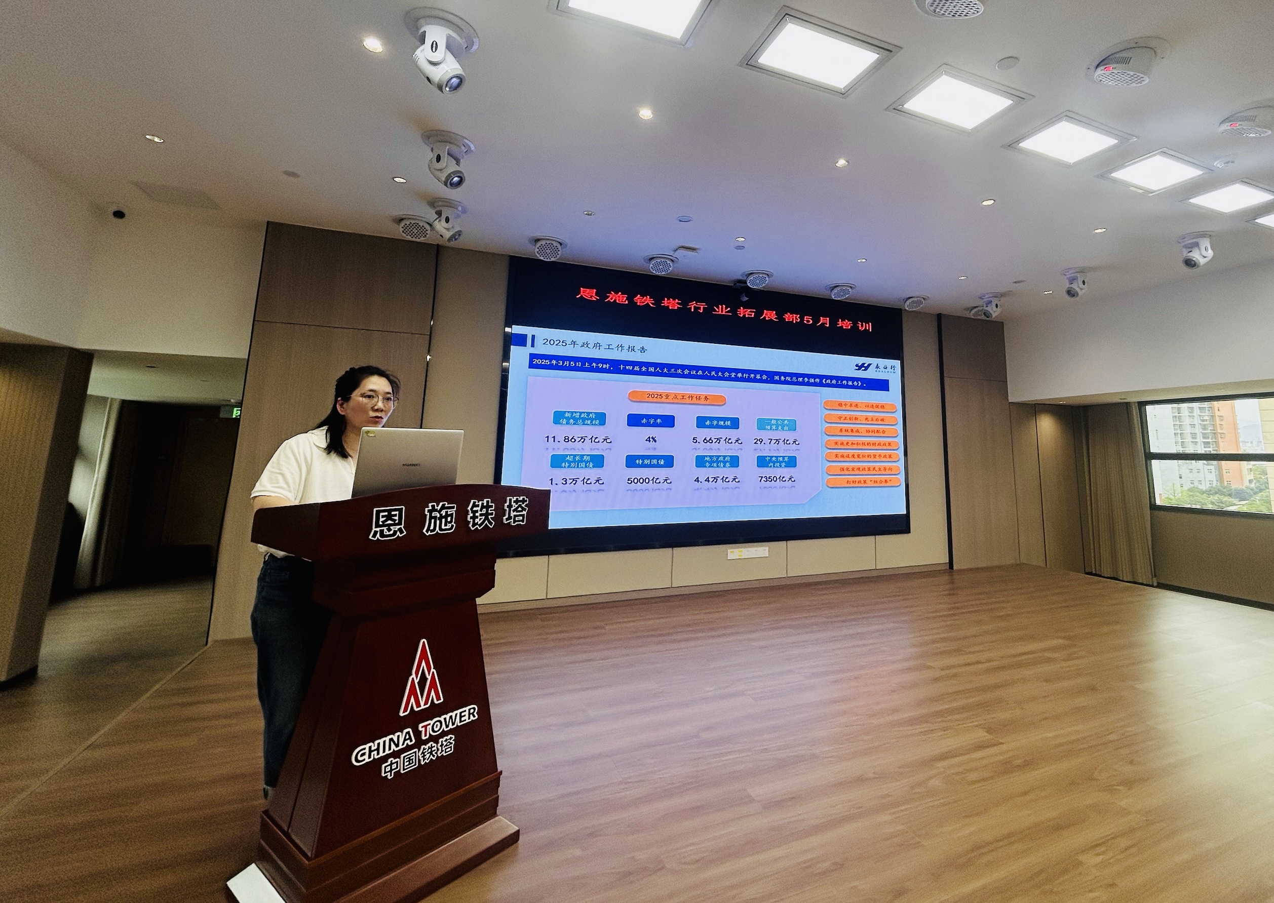 2025年5月16日,中國鐵塔股份有限公司恩施州分公司組織開展“恩施鐵塔行業拓展部5月培訓”。永業行鄂西區技術副總監譚立敏應邀作《新形勢下數據領域爭資立項謀劃實操》專題培訓。恩施鐵塔公司副總經理劉洋出席會議,業務拓展部經理王毅主持會議。