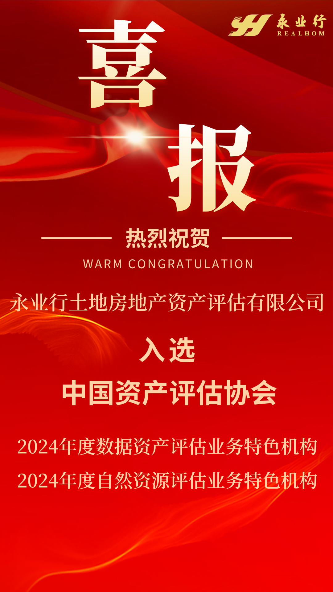 近日,中國資產評估協會發布2024年特色機構名錄,永業行憑借在專業領域的突出表現,成功入選"數據資產評估"和"自然資源評估"雙項特色機構名錄!本次評選全國僅72家機構獲評數據資產評估特色機構,162家機構獲評自然資源評估特色機構。