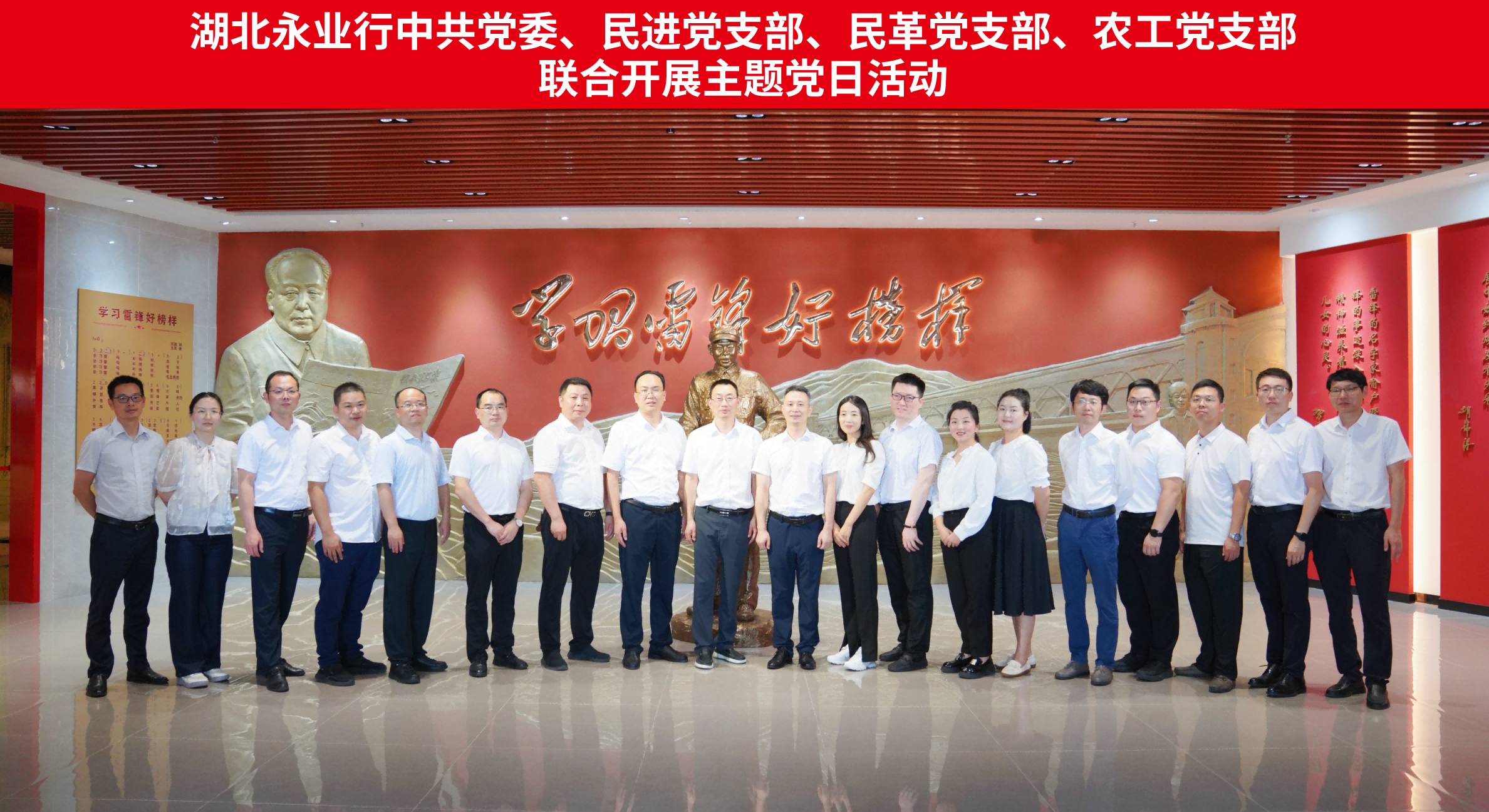 2025年7月12日,中共湖北永業行委員會組織開展“錘煉黨性守初心 凝心聚力促發展”主題黨日活動,赴咸寧嘉魚縣武漢東湖學院雷鋒文史館參觀學習。本次活動特邀民進湖北永業行支部、民革湖北永業行支部、農工黨湖北永業行支部等統戰人士及中高層管理人員、骨干員工一行60余人參加活動。
