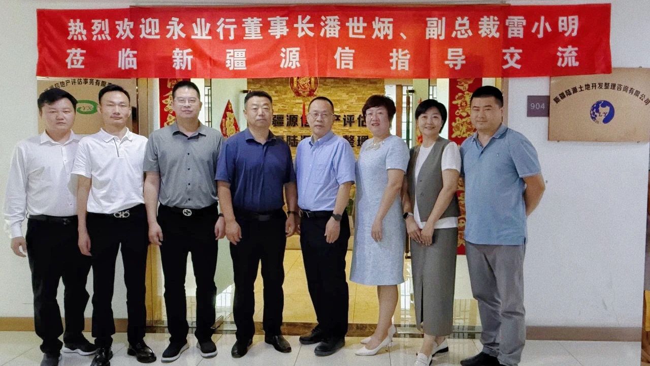 7月25日,中國土地估價師與土地登記代理人協會副會長、永業行董事長潘世炳,副總裁雷小明一行赴新疆源信地產評估事務有限責任公司(以下簡稱“新疆源信”)開展結對互助交流。新疆維吾爾自治區土地估價師協會會長嚴冬、協會秘書長楊永剛、辦公室主任路景娜,新疆源信總經理邱娜熱情接待并參加座談。