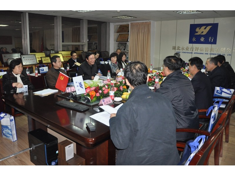 董事長方國成介紹了公司情況和發展戰略規劃,湖北省土地估價師協會秘書長婁人英介紹了行業發展情況及當前機構執業和發展過程中存在的主要問題。各位調研領導對永業行的成績予以了肯定,并表示將以專題報告、大會發言、委員提案等形式,在省政協十屆五次全體會議上轉達相關行業發展意見和建議,以促進評估行業的健康發展。