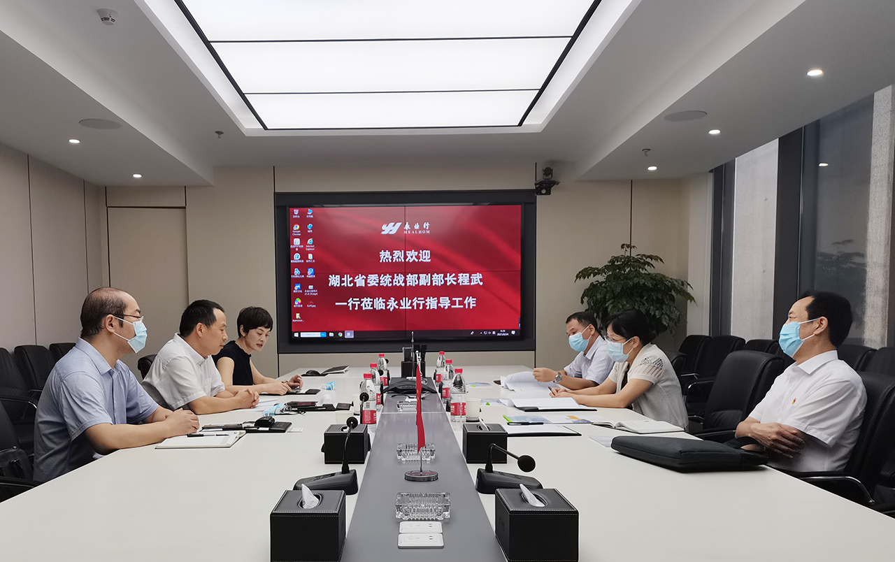 2021年8月24日,湖北省委統戰部副部長程武一行蒞臨永業行,走訪看望永業行新的社會階層人士,并就評估咨詢行業新階層人士工作進行調研。省政協委員、省新聯會副會長兼社會組織分會會長、永業行黨委書記、董事長潘世炳,市政協委員、市新聯會副會長、永業行輪值總裁王琴,永業行黨委委員、副總裁吳學鋒參加座談。