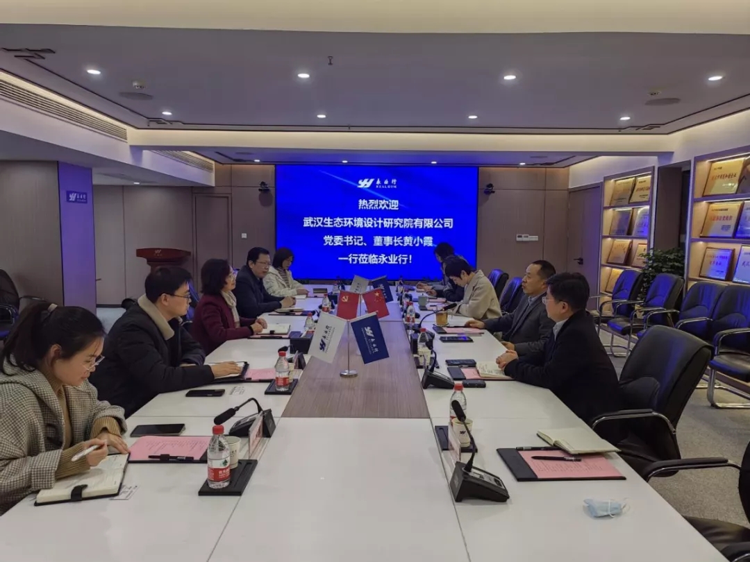 2022年1月7日,武漢生態環境設計研究院有限公司黨委書記、董事長黃小霞,副總經理明瑋,總工程師孫聰等一行蒞臨永業行考察交流。永業行黨委書記、董事長潘世炳,輪值總裁王琴,副總裁雷小軍等熱情接待考察組并進行座談交流。
