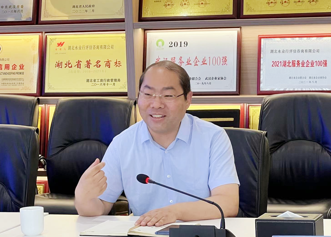 2022年6月15日,谷城縣副縣長褚春明一行蒞臨永業行考察交流。永業行副總裁吳學鋒、程為民等熱情接待考察組并座談交流。