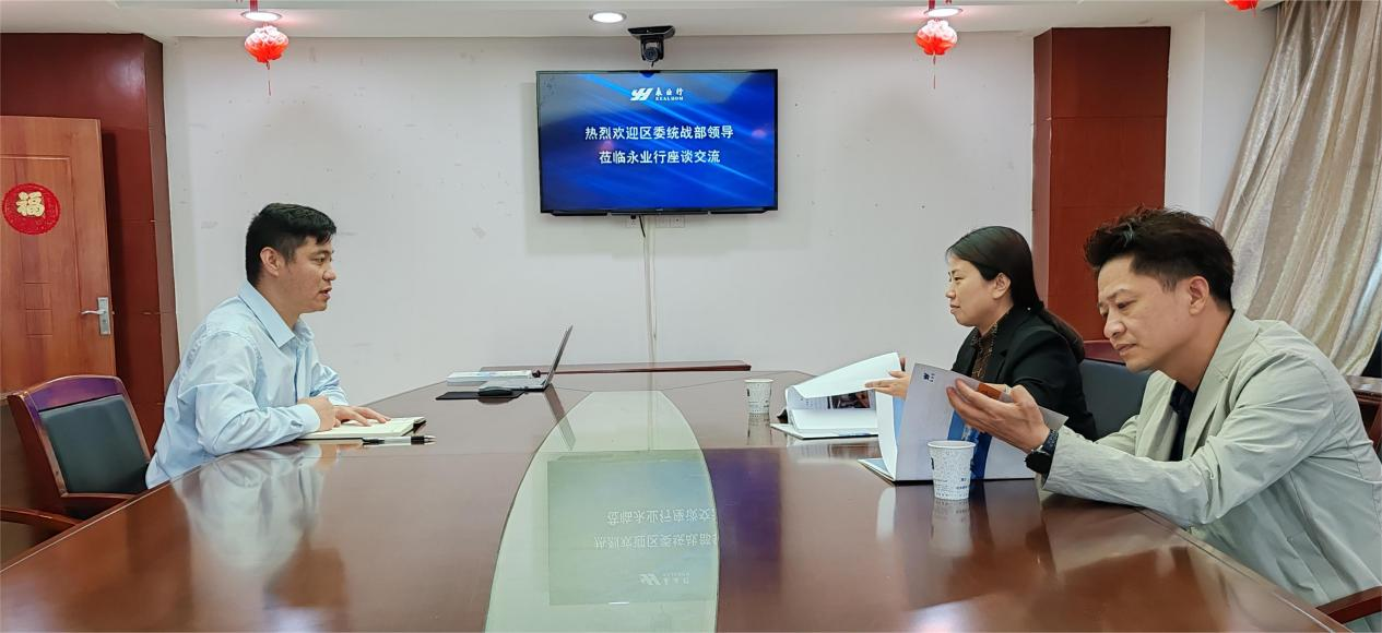 2024年4月30日,孝南區(qū)委統(tǒng)戰(zhàn)部一級主任科員鐘丹、區(qū)新聯(lián)會秘書長魯仕邦一行赴永業(yè)行孝感分部(下稱“孝感分部”)調(diào)研新的社會階層人士統(tǒng)戰(zhàn)工作,區(qū)新聯(lián)會副會長、永業(yè)行孝感分部總經(jīng)理梁小虎等參加座談交流。
