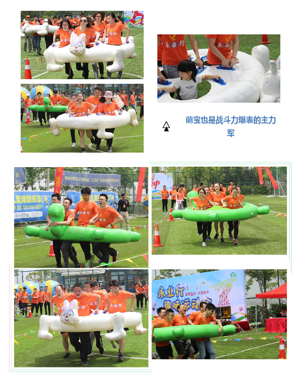 本屆趣味運動會共設置了6個比賽項目,考驗協作的蛟龍出海、活潑調皮的龜兔賽跑、驚險刺激的運轉乾坤、奮勇沖刺的障礙接力、齊心協力的旱地龍舟、拼盡全力的拔河比賽……比賽過程挑戰與趣味并存,不僅鍛煉了團隊協作能力,更是對隊員們體力、耐力的考驗。比賽現場,運動健兒的激烈角逐,激動人心;觀賽團隊的吶喊助威,震耳欲聾,大家不顧被烈日曬紅的皮膚、被汗水浸透的衣衫,拼盡全力為團隊榮譽而戰,沉浸在運動帶來的激情與快樂中。在沖過終點的瞬間,落后時的相擁鼓勁,勝利后的擊掌慶祝,作為永業行人的自豪感與榮譽感油然而生。一輪輪激烈的角逐后,各組隊員由比賽之初時的“矜持”快速發展成為相擁慶祝的戰友。如果說一場比賽建立不了感情,那么,就來兩場?