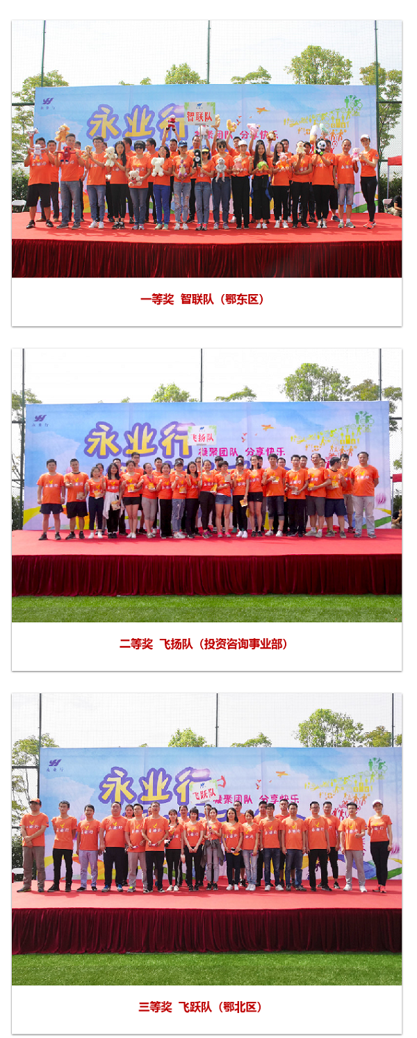 釋放了一整天的洪荒之力,最激動人心的時刻終于來臨啦!副總裁王琴在閉幕式中宣布了獲獎的三個團隊:智聯隊(鄂東區)、飛揚隊(投資咨詢事業部)、飛躍隊(鄂北區)分別獲得一、二、三等獎。祝賀三支隊伍獲得佳績,But其他隊伍也棒棒噠!“友誼第一,比賽第二”,揮灑的汗水、收獲的友誼、增加的默契更加可貴!