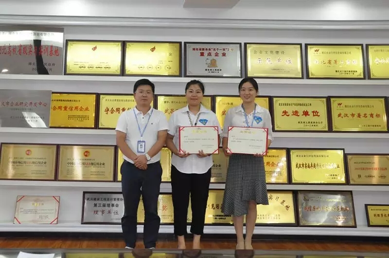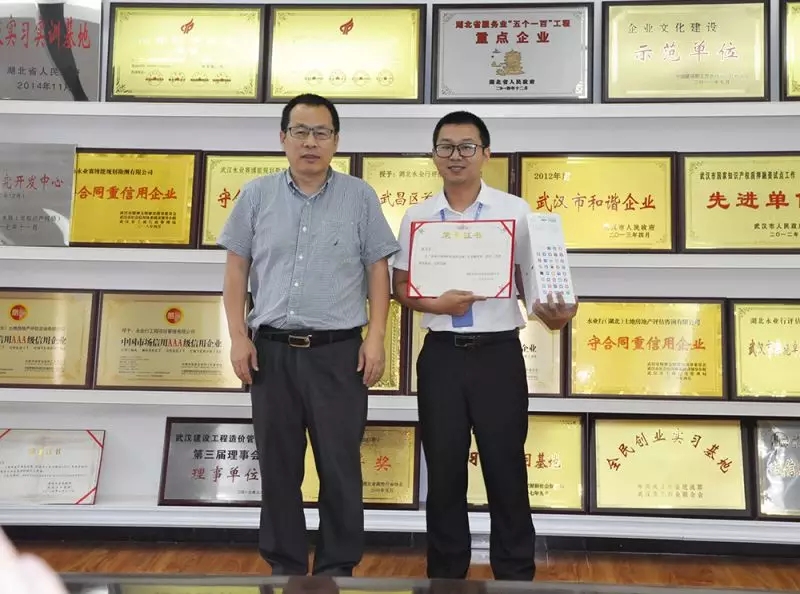 永業行副總裁劉曉峰為三等獎獲得者測繪地理信息一部孔書敏、國土研究事業部廖廣宇、鄂東區袁鑫頒獎