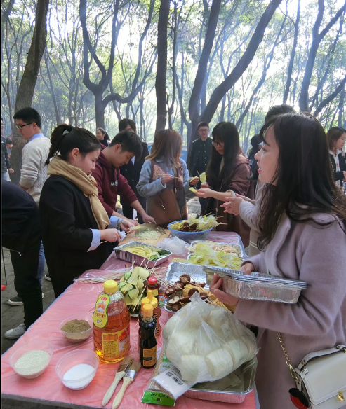 在燒烤活動現場,大家拿出提前準備好的食材,分工合作,體驗了“自己動手、豐衣足食”的樂趣。在制作和分享美味的過程中,工作的壓力得到了釋放、同事間的感情得到了交流。大家烤得熱火朝天,吃得不亦樂乎!歡聲笑語連成片,其樂融融,充分體驗了野外集體生活的樂趣。