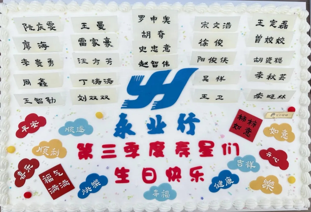 放有所有壽星姓名的生日蛋糕,公司領(lǐng)導(dǎo)、鄂西區(qū)總經(jīng)理雷小明親臨現(xiàn)場(chǎng)獻(xiàn)上生日祝福~滿滿的儀式感,讓小伙伴們倍感溫暖。