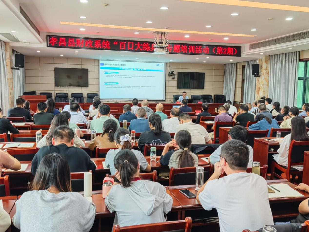 孝昌縣財政局機關全體干部職工,各財政所、財稅服務中心分管“三資”人員及年輕干部,永業行資產管理事業部執行總經理易博書、資產管理事業部市場部總經理文征參加會議。