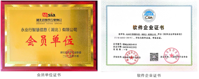 近日,永業行成員機構永業行智慧信息(湖北)有限公司(以下簡稱智能公司)正式獲批成為“湖北省軟件行業協會”會員單位,并獲得國家“雙軟認證”。